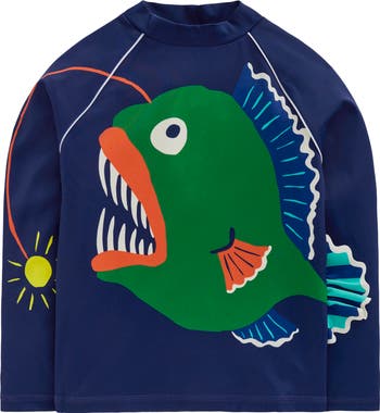 Raglan sleeves keep your kiddo moving easily in this rashguard featuring an anglerfish screenprint that's playful and bold.