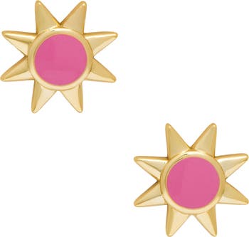 Made specially for kids, these sun stud earrings are bursting with color thanks to a pink enamel center.