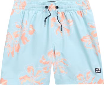 Your child will be ready for a pool day in lightweight swim trunks featuring a tropical print, water-repellent coating and adjustable drawstring waist.