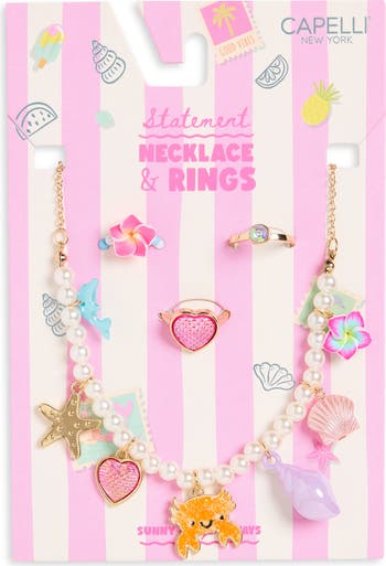 Let your budding style star express their inner mermaid with this statement charm necklace and assorted rings set.