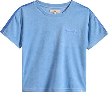 Watch them savor the sunshine in this soft terry logo T-shirt updated in a cropped fit.