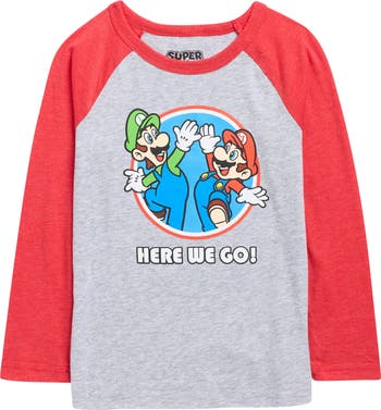 The wacky Nintendo pair your child can't get enough of is game for everything, as seen on this cotton-blend T-shirt with a baseball-style colorblock.