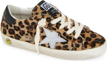 Genuine calf hair is spotted with lively leopard spots on a kid-sized sneaker complete with a silver star appliqué and signature scuffs.