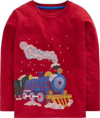 Your kiddo will be chugging along in comfort with this colorfully embroidered cotton T-shirt in their rotation.