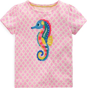 Kids' Superstitch Seahorse Embroidered Cotton Graphic T-Shirt