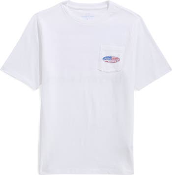 Your patriotic surfer will love the design on this beach-picnic-ready cotton T-shirt finished with a handy pocket.