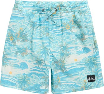 These stretch-enhanced volley shorts hint at tropical breezes with a scenic beach print. An elasticized drawstring waist provides comfort, while a back pocket secures essentials.