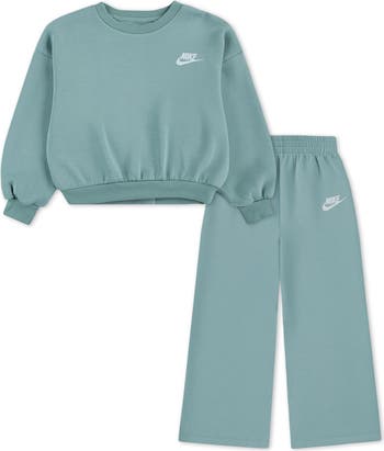 Made from a soft and stretchy fabric this two-piece set, featuring a crewneck sweatshirt and elastic-waist sweatpants, is playdate approved.