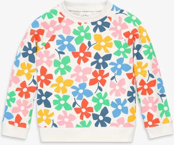 A layer-friendly sweatshirt that’s classic, comforting, and really soft. Available in mood boosting bright stripes or prints. Made from 100% cotton french terry and pre-washed to minimize shrinkage. It is naturally soft with a breathable thickness that stands up to play. Offered in sizes 2-14. Machine wash and tumble dry.