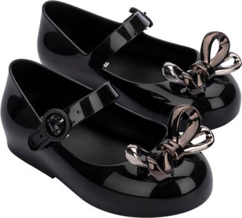 Treat your tiny stepper to this sweet mary-jane flat crafted from signature fruit-scented PVC and topped with a shiny bow.