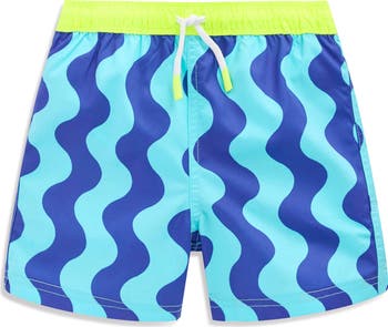 Keep your kiddo comfy in and out of the pool wearing these vibrantly patterned swim shorts featuring an adjustable drawstring waist.