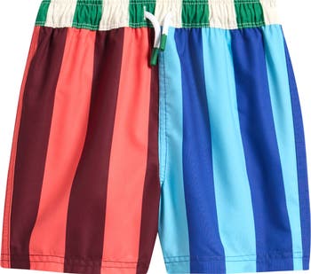 Keep your kiddo comfy in and out of the pool wearing these vibrantly striped swim shorts featuring an adjustable drawstring waist.