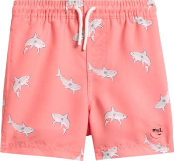 Keep your youngster splashing happily in these drawstring-waist swim trunks made with on-seam pockets.