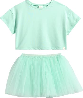 Your tiny trendsetter will love twirling the day away in this party-perfect set featuring a tutu-style tulle skirt and matching cotton T-shirt.
