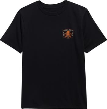 Combed, ring-spun cotton keeps kids comfy between school days and vacay adventures in this relaxed T-shirt stamped with vibrant graphics at the chest and back.