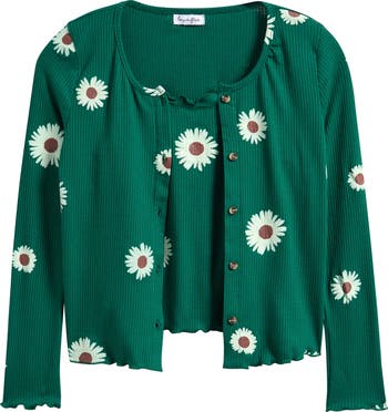 Your kiddo can create a lovely layered look with this ruffle-trimmed tank and ribbed cardigan set or wear them on their own for maximum outfit potential.