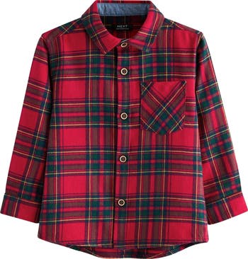 The bright tartan of this brushed-cotton-flannel shirt will have your child looking festive during all the activities of the holiday season.