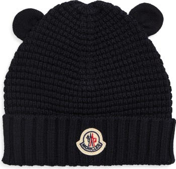 They'll be comfy, cozy and downright cute in this woolly beanie sporting adorable teddy bear ears and Moncler's adventure-driven cockerel logo patch. An upturned cuff helps little ears stay warm.