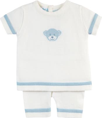 Get your little cub ready for the day with this adorable set featuring cute contrast trims and a sweet teddy bear on the top.