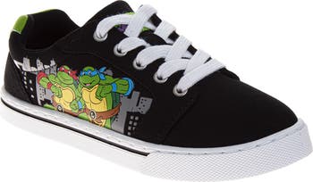When Turtle Power kicks in, your kid will be ready to spring into action with this throwback canvas sneaker starring their favorite crust-loving, crime-fighting heroes.