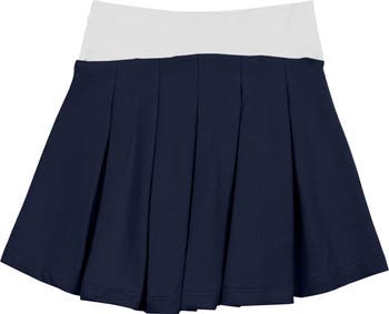 A contrasting waist and voluminous box pleats add charming dimension to a play-ready skirt made from a soft cotton blend.