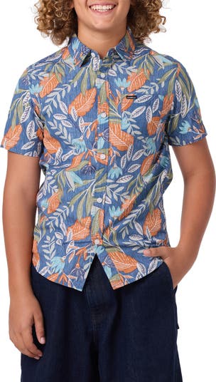 Beachy palm fronds sway on a comfortably lightweight sport shirt that will look handsome on them at the luau and everywhere else.