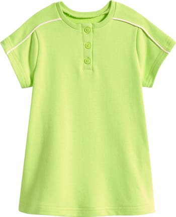 A henley placket and contrast piping add to the fun of this terry T-shirt dress sized just for little ones.