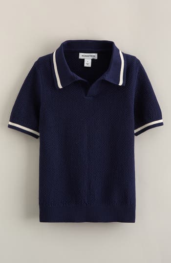 A tipped collar and textured knit smarten this comfy cotton polo that will give your kid a polished look.