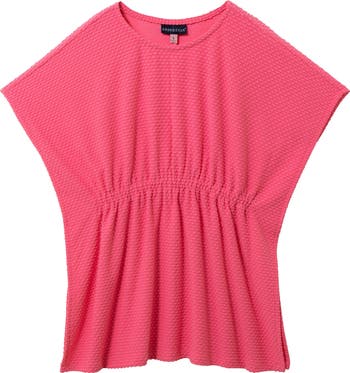 A textured solid hue gives playful energy to this sweet cover-up finished with breezy side slits for a twirl-ready finish.