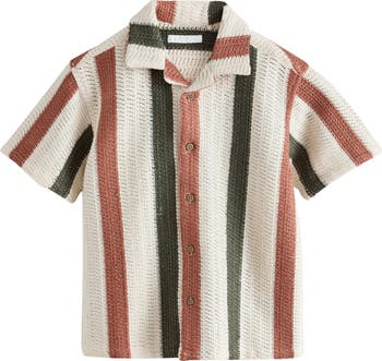 Rendered in a soft cotton blend, this striped button-up pairs a textured knit with a neat notched collar for instant retro swagger. Consider it their shortcut to looking put-together without feeling too buttoned-up.