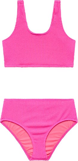 Your favorite youngster will be ready to splash and play in this matching two-piece swimsuit made with puckered texturing that lends dimension to the look.