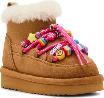 Hiking-boot inspired laces with colorful beads bring kid-approved charm to this cozy boot warmed by faux-fur lining.