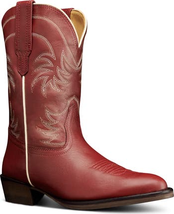 A cushioned midsole and breathable mesh lining keep little feet comfortable, while a rubber sole stands up to every sprint, stomp and scuffle in this iconic Western boot scaled-down for kids. It's built tough with a Goodyear welt for big adventures yet polished enough for picture day.
