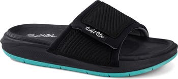 These cushy slide sandals give growing feet arch-supporting comfort as they enjoy sunny days beachside.