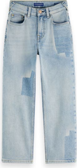 Nicked, patched and faded like a pair of old favorites, these jeans cut from soft low-stretch denim feature a low-rise fit that stays loose and roomy down to the hems.