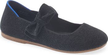 A tuxedo-inspired bow trims the strap of this kid-sized mary jane made with a soft knit sourced from recycled plastic bottles. A cushy footbed and rubbers sole offer all-day comfort.