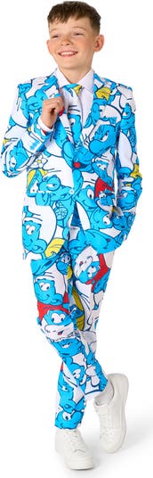 Papa Smurf, Smurfette and the whole blue village brighten a suit guaranteed to make your young Smurfs fan the highlight of any get-together. It comes with flat-front trousers and a matching tie to complete the Smurfy look. When the party's over, everything washes easily in your machine so it's always ready for the next event.