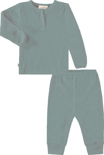 Your little one will be comfy and cute all day in this breathable thermal-knit henley and joggers made from modal and organic cotton with a bit of added stretch.