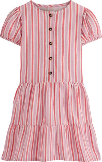 Candy-colored stripes lend a classic look and feel to a pure-cotton dress cut with a tiered skirt sure to inspire endless twirls.