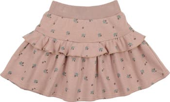 A tiered silhouette and ruffle trim add some swingy fun to your little one's look when they wear this cotton-blend skirt covered in an adorable print.