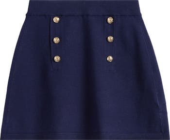Decorative ornate buttons with high-shine polish add shimmer and shine to the front of an A-line skirt that brings posh style to their wardrobe selection.