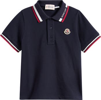 Tricolor tipping at the collar and cuffs plays up the sporty look of this kid-sized cotton-piqué polo detailed with Moncler's signature cockerel logo at the chest.
