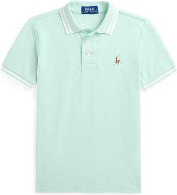 Breathable cotton piqué brings sporty comfort to a polo that's framed in pale tipping with a kid-size fit and a straight hem that works tucked or untucked. The iconic polo rider embroidered on the chest adds a prepster pop to any favorite look.