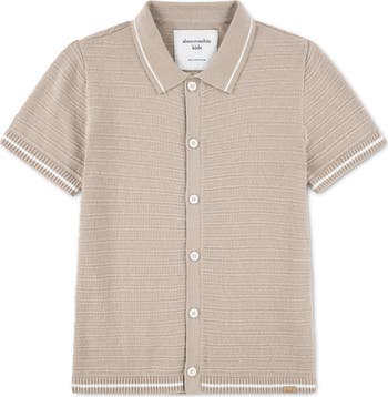 abercrombie kids Kids' Tipped Short Sleeve Cardigan, Alternate, color, Simply Taupe