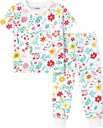 - Short sleeve top with long pants set / Soft, itch-free feel for sensitive skin / Snug fitted comfort that stays in place / Breathable top for warmer nights and indoor sleep / Cozy full-length pants for coverage and comfort / Stretchy waistband for easy on and off / Flexible fit for active sleepers / Smooth seams for all-night comfort / Durable stitching for repeated washes / Holds shape and color wash after wash / Great for bedtime, lounging, and sleepovers / Fun prints kids love / Toddler and kids sizing (2Y to 10Y)