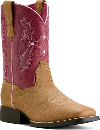 This square-toe Western boot is sized for your little rider with an innovative insole made to be removed for extra room as your kiddo grows.