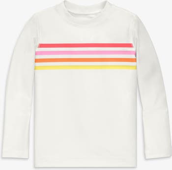 Enjoy safe fun in the sun with this long sleeve rash guard offered in a rainbow of colors. It's soft and stretchy with long sleeves for slather-free sun protection. With a hip length that is comfortable and snug fit. Fabric is 80% recycled nylon and 20% spandex, with UPF 50+ protection.