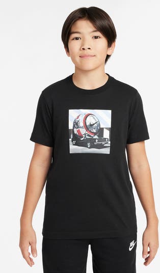 The crushing powers of soccer bring big Nike energy to a T-shirt made for kids who like to play and relax in the comfort of soft, breathable cotton.