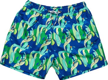 A jungle-inspired pattern details these surf-ready board shorts with an elastic waist that provides all-day comfort to your little surfer.