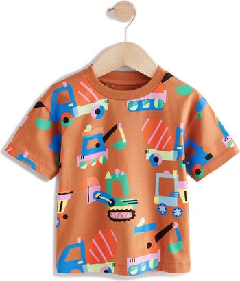 Heavy equipment gets things done on this soft and colorful cotton-jersey T-shirt.